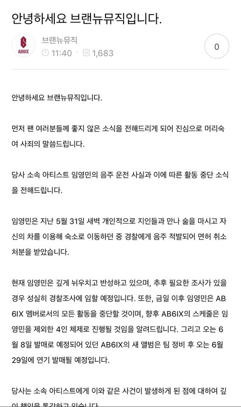 임영민 어떻게 된 일이야 나 ab6ix 팬이고 박우진 최애 임영민 차애였어 .. 박우진 다리부상때문에 진짜 오랜만에 무대하는거고 그만큼 기대하고 있는 거 눈에 보이는데 리더가 어떻게 그럴 수 있어 진짜 눈물만 나와 임영민도 진짜 좋아했는데 얼마나 먹었으면 면허취소까지 돼 ?