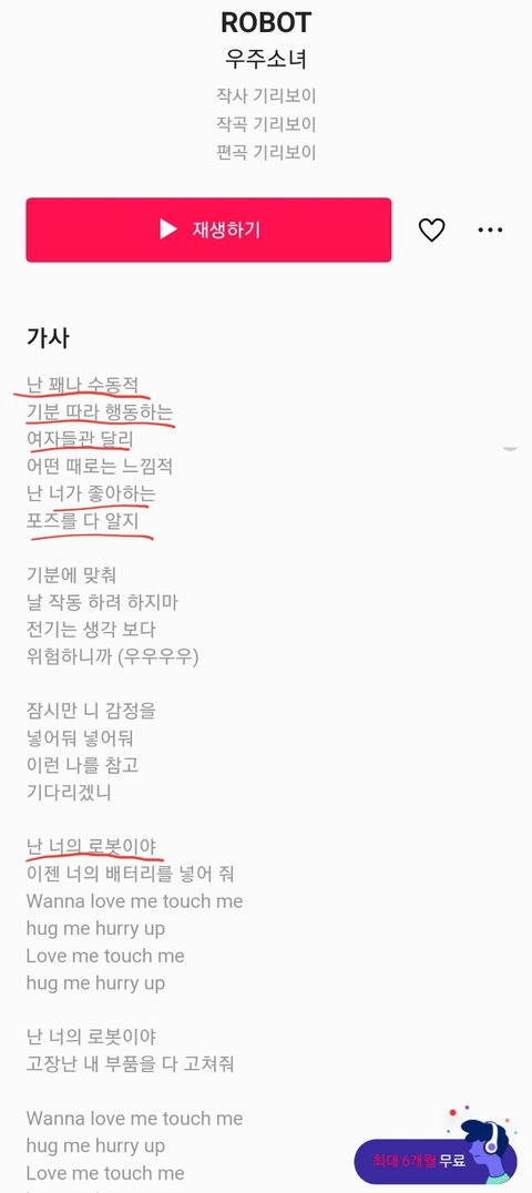 그남이 쓴 가사.. 여자를 수동적인 존재로 만들어버림ㅋㅋ