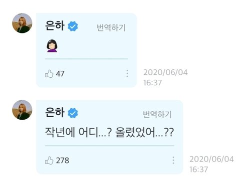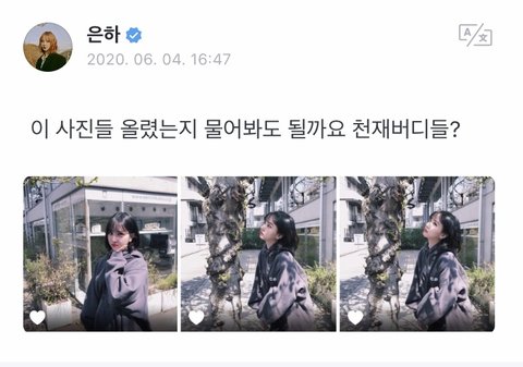 위버스를 보던 은하는 버디가 그 사진은 이미 작년에 올렸던 사진이라는걸 알려줘서