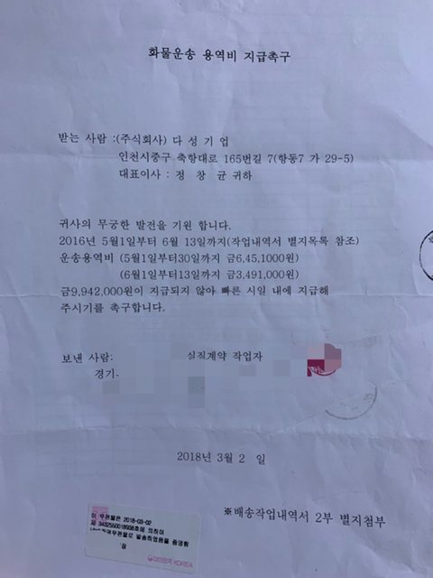 당시 받지 못한 5월과 6월의 임금 때문에 기름값까지 포함하여 500만원 카드 연체 빚까지 생겨