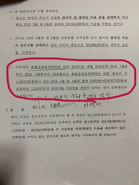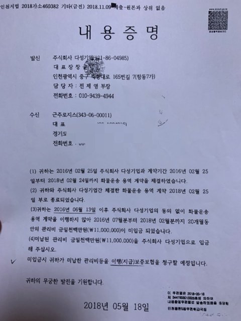 둘째는 기업이 현재 20개월분의 관리비 1100만원을 지급할 것을 청구하고 있는데