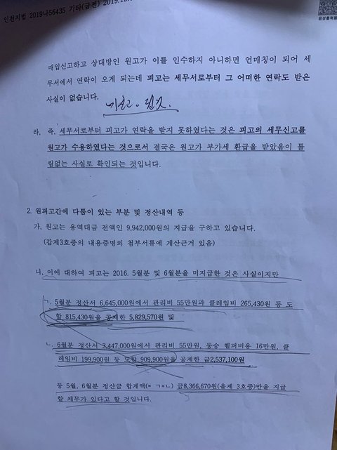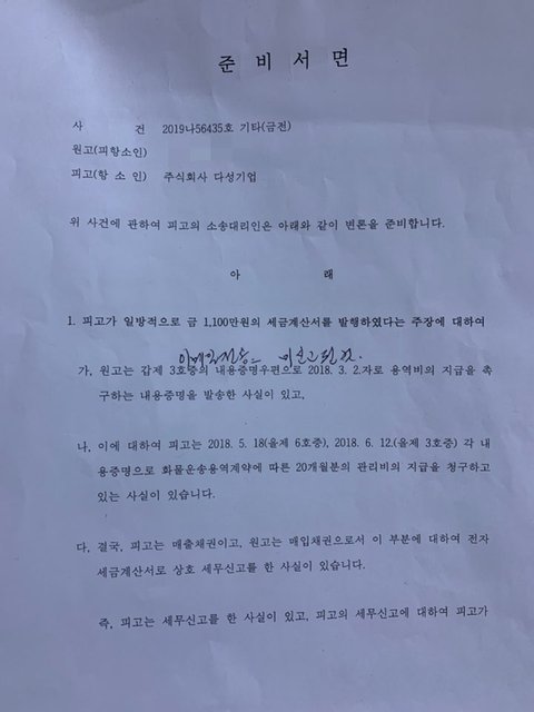 기업은 세금도 주지 않았으며 일방적인 불법 세금계산서를 발행해서