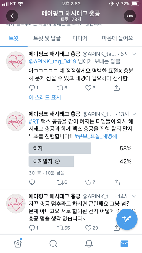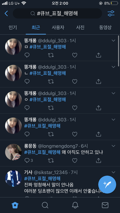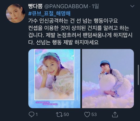 그리고 이틀 뒤 에이핑크 해시태그 총공하는 계정(팔로워 수는 약 700, 공식적인거 아니라 함)에서 #큐브_표절_해명해 를 실트로 올림 그리고 1위 달성^^