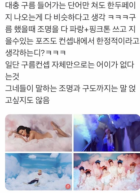 이건 타그룹도 많이 한 컨셉이며 그렇게 따지면 오하영도 표절한게 되고 심지어 더 비슷함