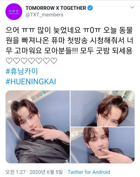 아 애들온줄몰랏네...휴닝이오늘셀카 ㅁㅊ건가...
