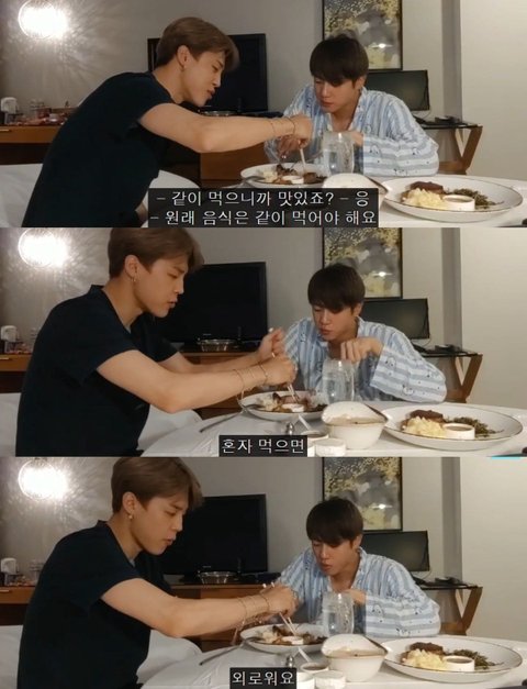 혼자 먹는 밥보다 같이 먹는 밥이 더 좋은 지민이
