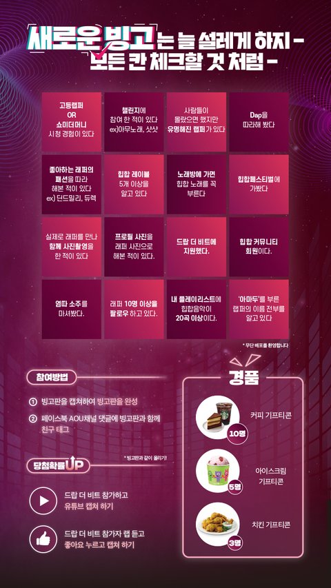 현재 페이스북에서 빙고 이벤트도 같이 진행 중 입니다.