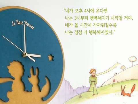 "언제나 같은 시각에 오는게 더 좋을 거예요. 가령 당신이 오후 4시에 온다면 나는 3시부터 벌써 행복해지기 시작할 거예요. 시간이 지날수록 점점 행복감이 더할 거예요. 4시가 되면 안절부절못하고, 마침내 당신을 보게 되면 당신은 내가 얼마나 행복해하는지를 알게 될 거예요."