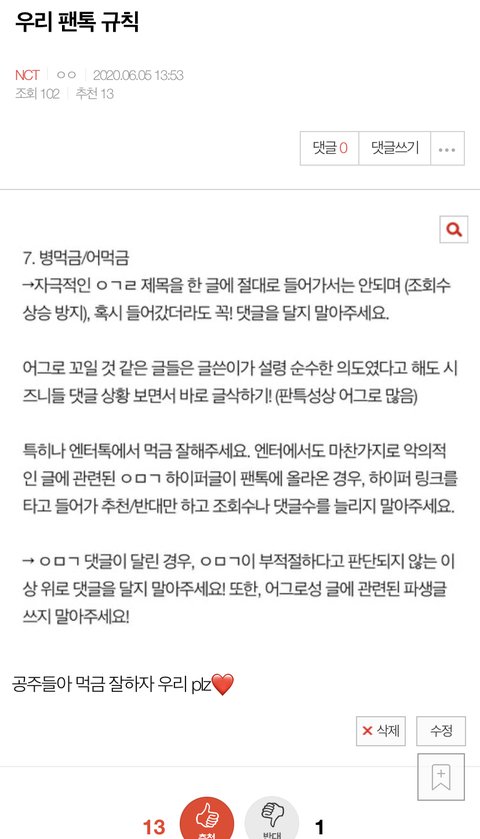 우리 팬톡 규칙