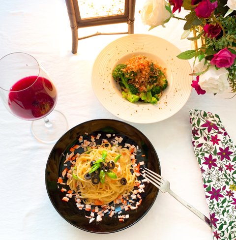 밖에 나가는 것도 귀찮아 냉장고도 털고...게맛살 크림 파스타 & 브로콜리 샐러드