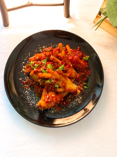 전자렌지에 1~1:30초 정도 돌려 좋아하는 식감을 찾고 발사믹과 츠유, 후추로 드레싱을 만들어 함께 해준다.바지락 버터 구이닭발