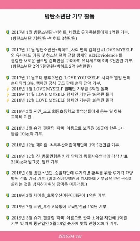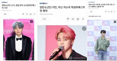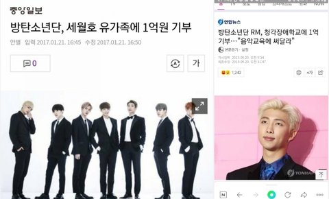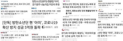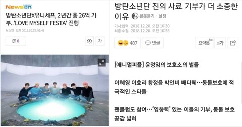 26억..12억... 이렇게 해도 꼬우면 니들이 기부해 +) 업데이트 안된 2019년 까지의 기부현황 대충 계산해봐도 그동안 기부한거 100억임 (음반수익 3% 기부한것꺼지 합치면. 그게 23억 정도)