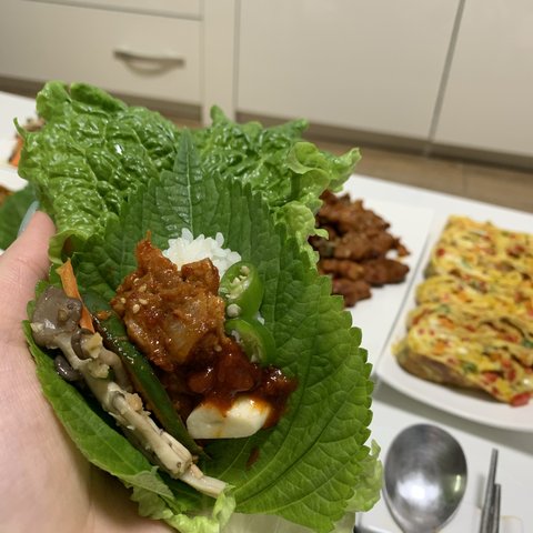쌈싸먹는걸 좋아해서 쌈도 야무지게 싸서 먹음 ㅎ