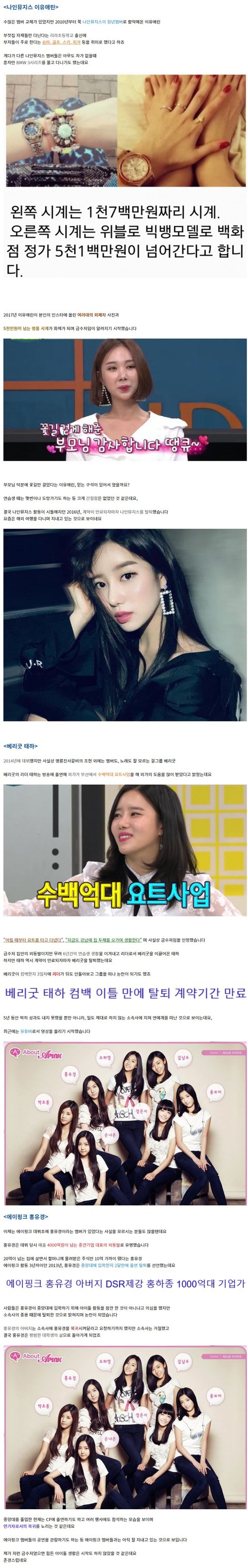 나인뮤지스 이유애린 베리굿 태하 에이핑크 홍유경