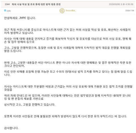 고소공지 올라옴 ㅎㅎ 이김에 트와안티블로그도 잡혀갔음좋겠넹~