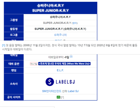 그리고, 또 이야기 해보자면, 실제로 예전부터 슈퍼주니어 K.R.Y(크라이) 앨범이 나온다는 소식이 종종 있었어. 무산된 적이 여러번 이었거든. 팬들 사이 찌라시로는, 너네 다 아는 려욱 '어린왕자', 규현 '광화문에서'가 원래 크라이 곡이라는 이야기도 있어...ㅠㅠ