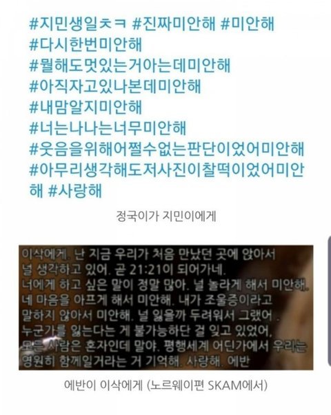 네에... 그렇습니다 그리구 위에 #사랑해 해시 ㅈㄱ이가 딱 두 번 썻는데 그 중 한 번이 R엠형한테 쓴 거고 마지막 한 번이 저 ㅈㅁ 생일축하글이야