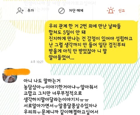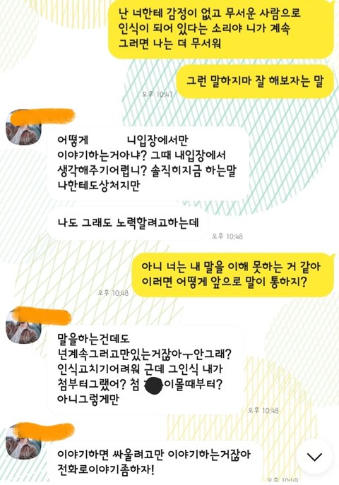 남자애가 보낸 카톡의 장문은 누가봐도 절절한 사이인 듯이..... 소름돋고 싫었다