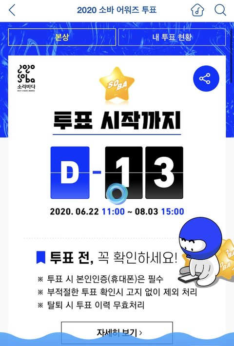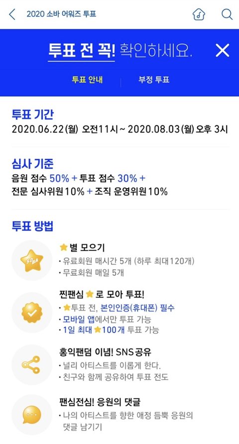 하루 5개밖에 안돼ㅠㅠ 모바일 앱에서만 투표 가능