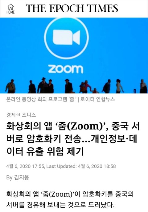 우리가 쓰는 zoom 중국서버 쓰는거 밝혀짐.