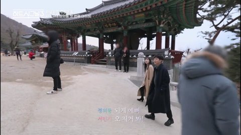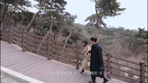 구두신고 백들고 오르막길 대화하며 숨차는 소리 들림