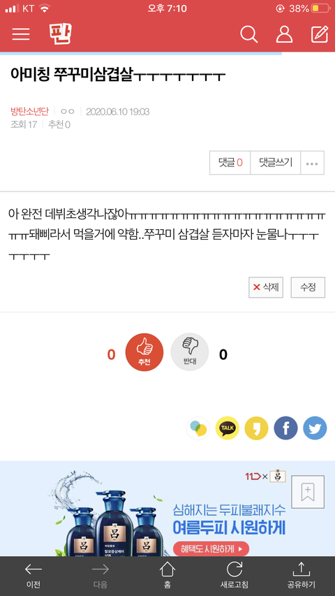 이글보여..?나뭐 잘못함???쭈꾸미삼겹살에 눈물날수도있지 왜그르냐..