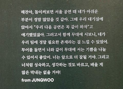 제일 좋았음... 다른 멤버들 서로 적어준것도 좋았지만...