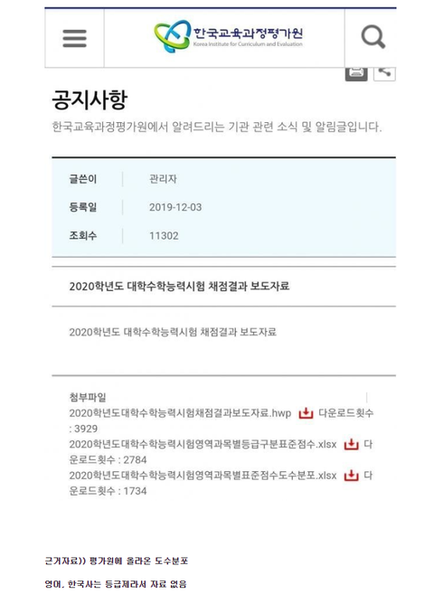 영어 영역, 한국사는 절대평가라서 도수분포