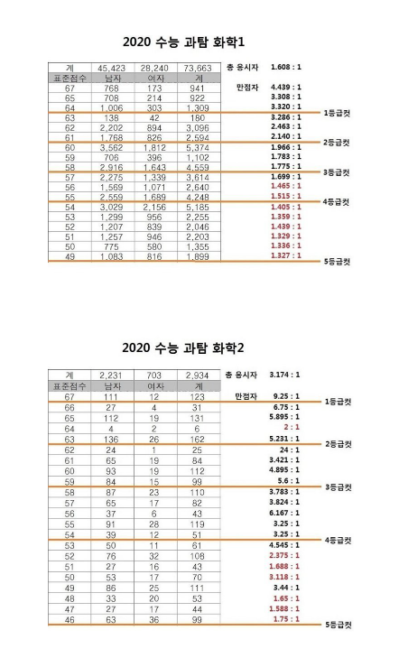 2020 화학2 = 만점자부터 4등급까지 남자