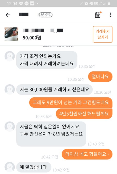 저분은 비매너로 평가한상태입니다.. 가격 후려치기, 판매자 의사 없이 장소 시간 먼저 맘대로 제안하는 행동으로요.