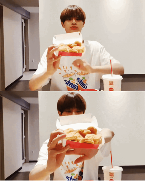 이미 초점이 잘 맞은 너겟과 상자보다 작은 손