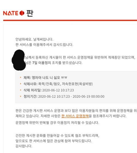 Ip 차단해도 안 먹히니까 이젠 아예 정지 때리노 ㅠㅠ