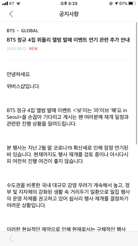 아래버스샵 앨범 이벤트 추가 공지