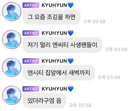 슈주 n년차 파는 팬인데 짹에서 다들 그냥 올리길래 많은 사람들이 알았으면 좋겠어서 올림..에스엠 사생 문제 심각한거 알고 있었는데 선배인 울 애들이 언급할정도면 얘네 사생 겁나 심각한거 같은데 작작해라..!!!!!사생짓은 사랑이 아니라 범죄야