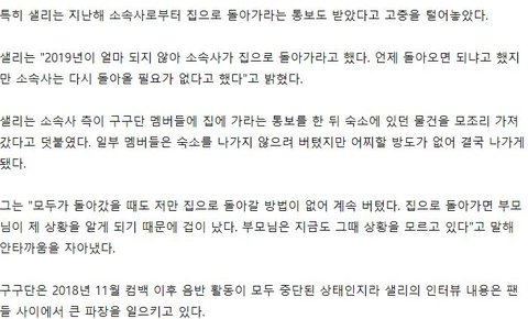 저건 인기멤 마냥 탓한다기보단 읽어보면 억울할만 한데?? 억지로 쫓겨난 거잖어 소속사에서