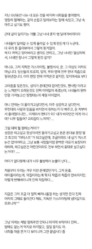 ㅋㅋㅋ웃기다.. 당장 몇 시간 전에 김남준 장문 편지 읽긴 한 걸까.. 걍 애초에 맘 떴던 거 같은데 탈방계플 휩쓸려서 아 그런가 맞아 옛날엔 이랬던 거 같기도 하고 요즘은 왜 저러는 거야? 하면서 세뇌 당한 거 뻔히 보여 가스라이팅은 방탄이 아니라 탈방계가 하잖아 홈마라고 파급력 때문에 7주년에 올린 거 같은데 하필이면 김남준 홈마네 저 말이 김남준한테 적용이 될 거 같나