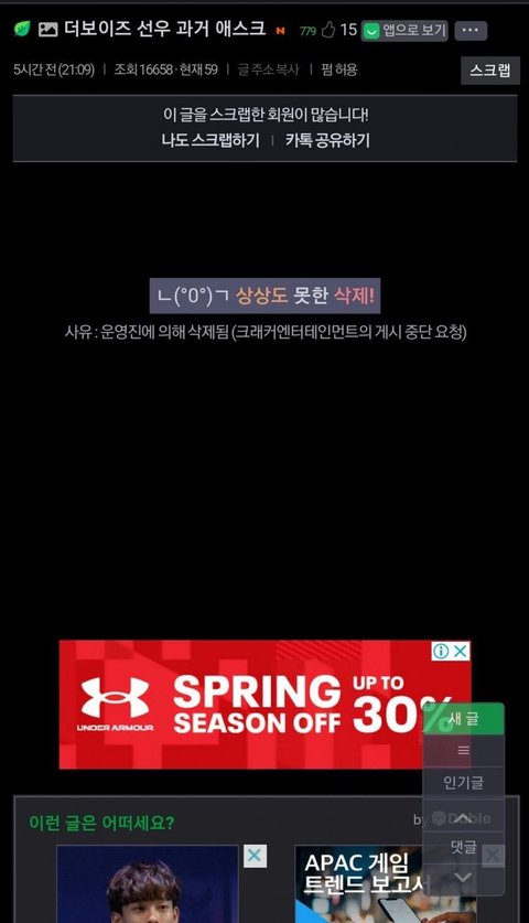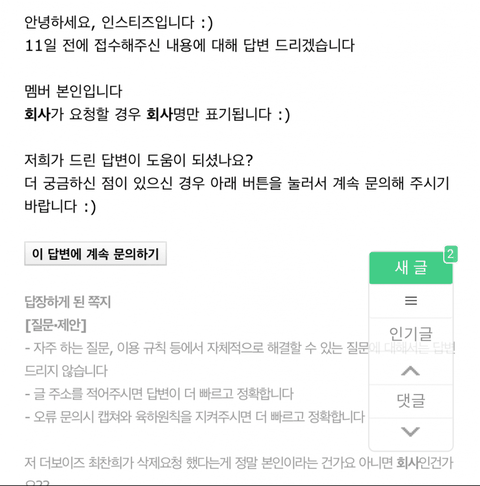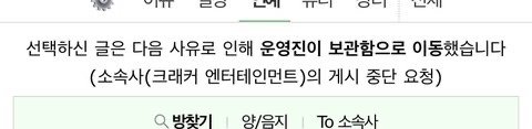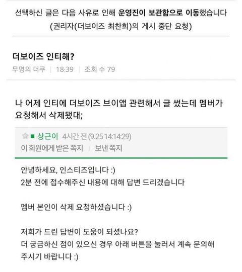 인티 글삭할 때 소속사 요청이랑 법무팀 변호사 요청이랑 구분해서 뜨는데 멤버 본인이 요청했대