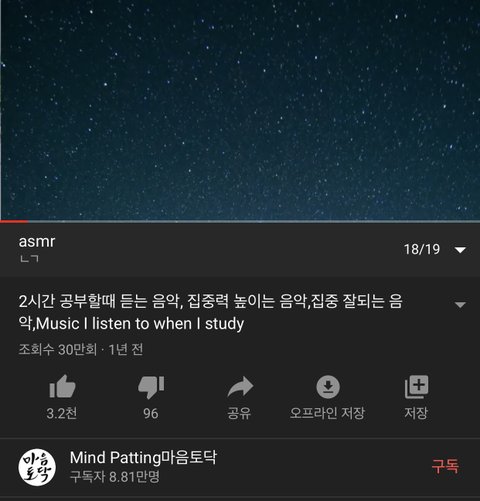 이 두개도 집중 잘됨 음악에 집중하지말고 들으면서 공부에 집중해야하는거 알지?? 이어폰끼고 소리는 너무 크게하지말고 적당히 조금만키워서 하는거 ㅊㅊ해