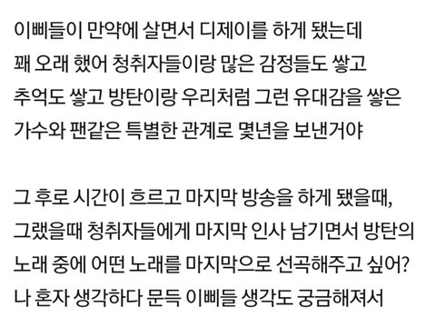 슙디처럼 디제이인데 마지막방송이라면 내 방송을 들어주던