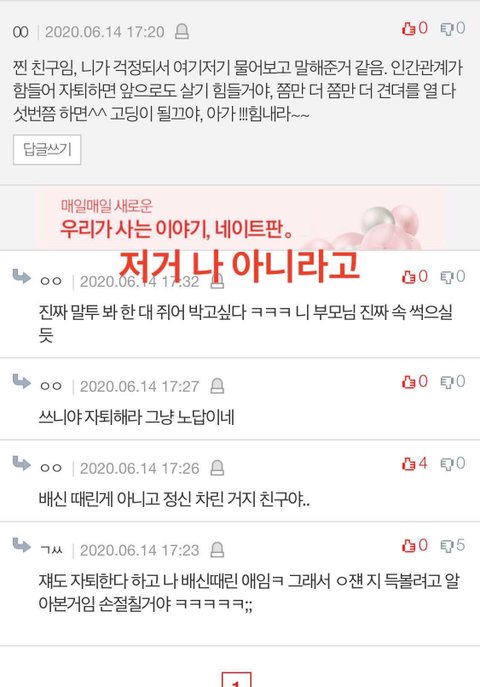 그리고 그 내가 내 친구한테 배신?? 했다고 말한 거 나 아니야 사칭이야..