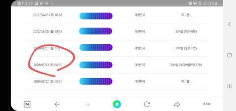 폰으로는 24시간 로그인 되있지만 pc는 아니거든요.. 그런데 21일 22일 기록은 없고 6월달 기록은 또 있어요.