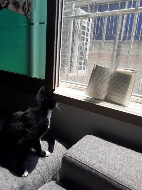 엄마가 책이라도 읽으라고 창가에 책을 펼쳐줌