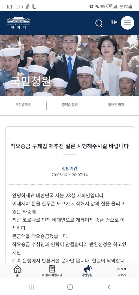 착오송금 구제법 통과되게 청원동의좀 부탁드립니다..