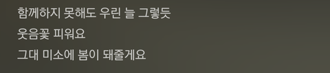 학교에서 미술 시간에 캘리그라피 한다구 좋아하는 가사나 글귀 찾아오라 했는뎅 ㅠ 예쁜 가사 추천 해죠 (될 수 있으면 짧은거류 .. 부탁해영)