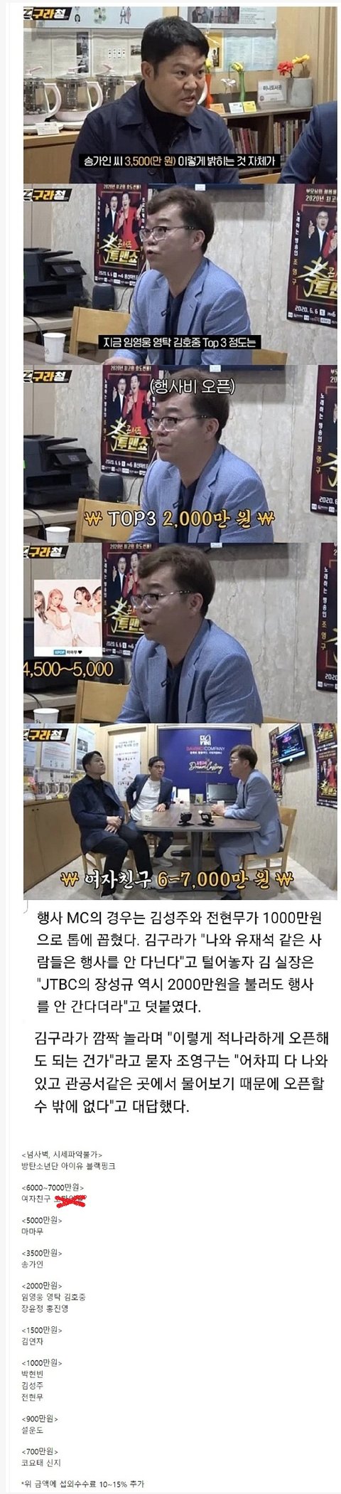 연예인들 최신 행사비용이래