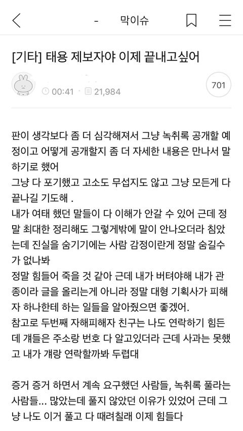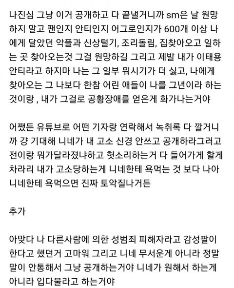 그리고 태용 피해자 카톡보는데 눈물나더라