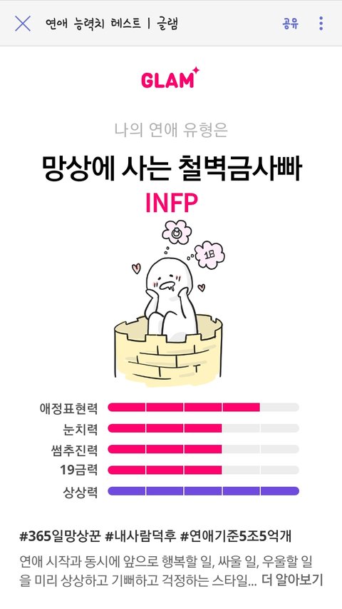 http://mbti.glam.am/intro 무슨 소개팅앱에서 나온 검사같은데 광고아님