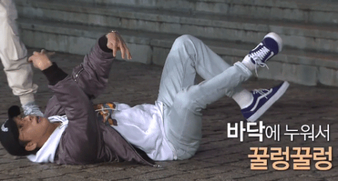 바닥에 누워서 꿀렁꿀렁 하다가