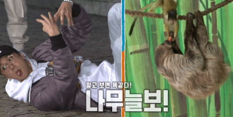 나무늘보를 몸으로 설명하는 라비