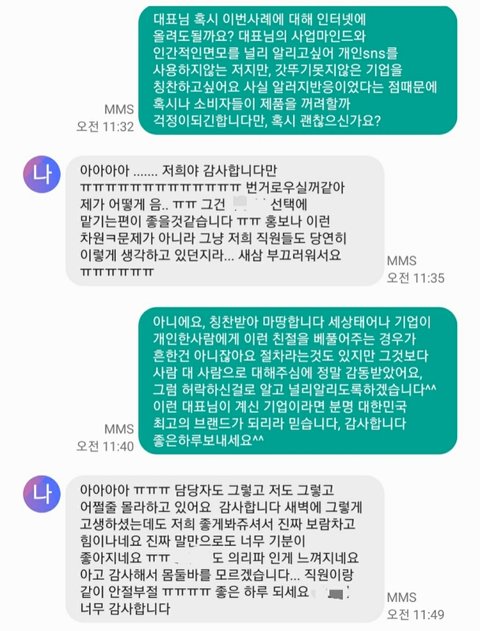 사람이 우선이라는 대표님의 사업철학과도 맞지않는 부분이라 피해부분에대해서는 대표님의 사비로 처리해주시겠다고 하셨습니다